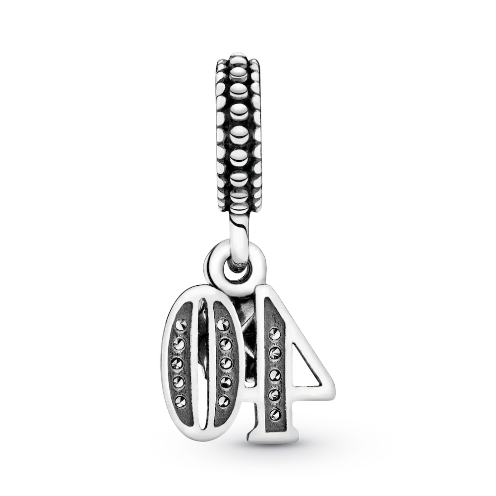 Made to celebrate a 40th anniversary or naughty forty birthday, this sterling silver dangle charm for Pandora Moments bracelets is accented with cubic zirconia and beaded details. It’s finished with a miniature four-leaf clover dangle, to bring luck to the person who wears it.