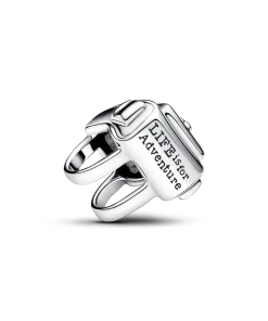 Heed the call for adventure with the Adventure Backpack Charm. A scaled-down sterling silver backpack features realistic details including wraparound straps, handle, buckles and pocket. An airplane symbol is imprinted on the front and a message is engraved on the underside: