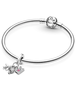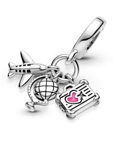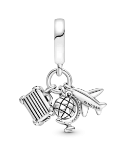 It’s time to pack your bags and add the Airplane, Globe & Suitcase Dangle Charm to your collection. 3 charms in 1, this sterling silver piece is every travel lover’s dream. Details include grooved windows on the airplane, longitude and latitude lines on the globe and a hand-applied pink enamel heart on the suitcase. Add this travel charm to your collection as a promise to plan future adventures or gift it to your globe-trotting BFF.