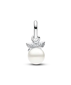 The Angel Wings Charm Trio celebrates love and protection. This sterling silver set features a cupid on a pearl, a heart embraced by wings, and a sparkling angel wing—perfect for a spirit-lifting look.