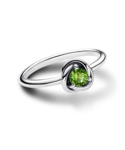 Wear a symbol of forever with the Spring Green Eternity Circle Ring. This sterling silver ring features one claw-set sparkling spring green man-made crystal. The polished band wraps around the center stone in an openwork braided infinity pattern. Whether you want to carry a reminder of eternal love or a symbol of the timeless joy that infuses each and every moment, this colorful eternity ring will bring sparkling meaning to your look.