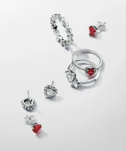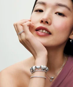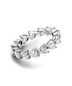 Make a bold statement of love with the Band of Clear Hearts Ring. Heart-shaped stones and V-shaped prongs repeat to create this sparkling eternity ring – a contemporary take on the classic heart-shaped setting. Wear it as a symbol of everlasting love, or stack it with our other Pandora Timeless eternity ring styles for maximum sparkle. Pairs perfectly with the matching Sparkling Heart Hoop Earrings for an elegant Valentine’s Day look.