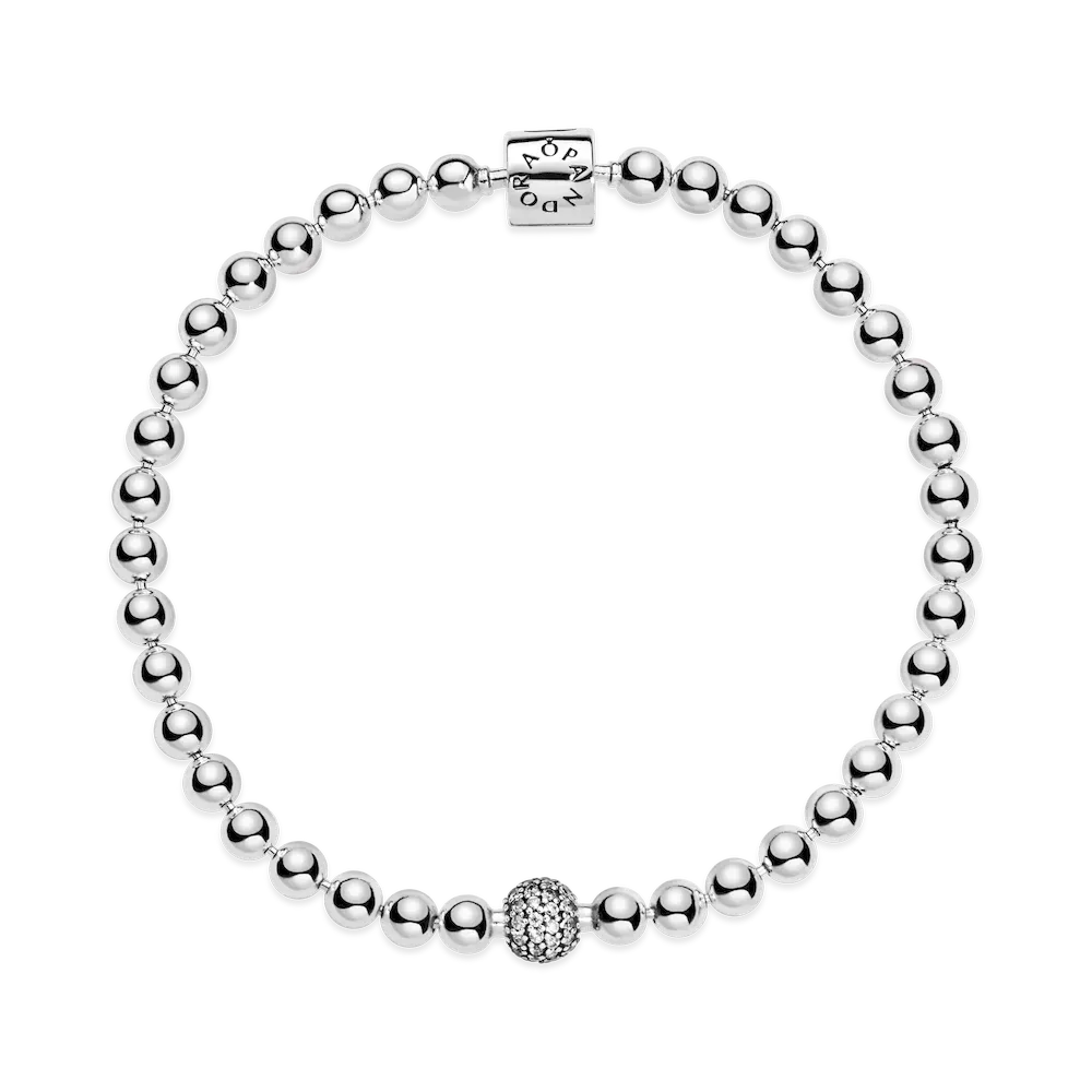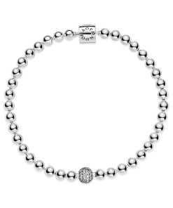 When you want to wear chunky and edgy beads with an elegant twist, this sterling silver Beads & Pavé bracelet is the perfect choice. The bracelet takes its inspiration from the alternative looks of body piercings and punk-inspired styles and adds a polished, refined twist. It features a fully beaded chain with one large pavé-set bead and a barrel clasp. The bracelet is designed to be worn alone or stacked with other bracelets in different metal finishes for the ultimate look.