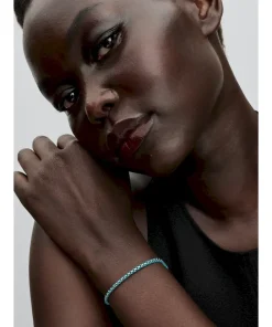 Braided sterling silver box chain with a touch of turquoise textile cord. Elevate your style with a unique combination of fabric and metal.