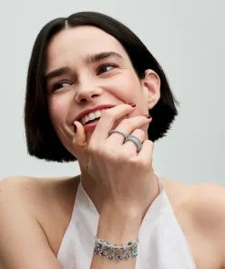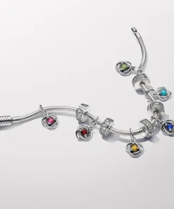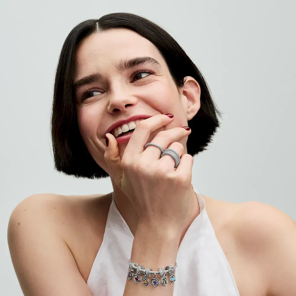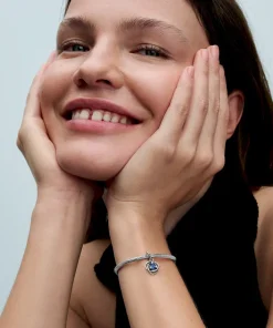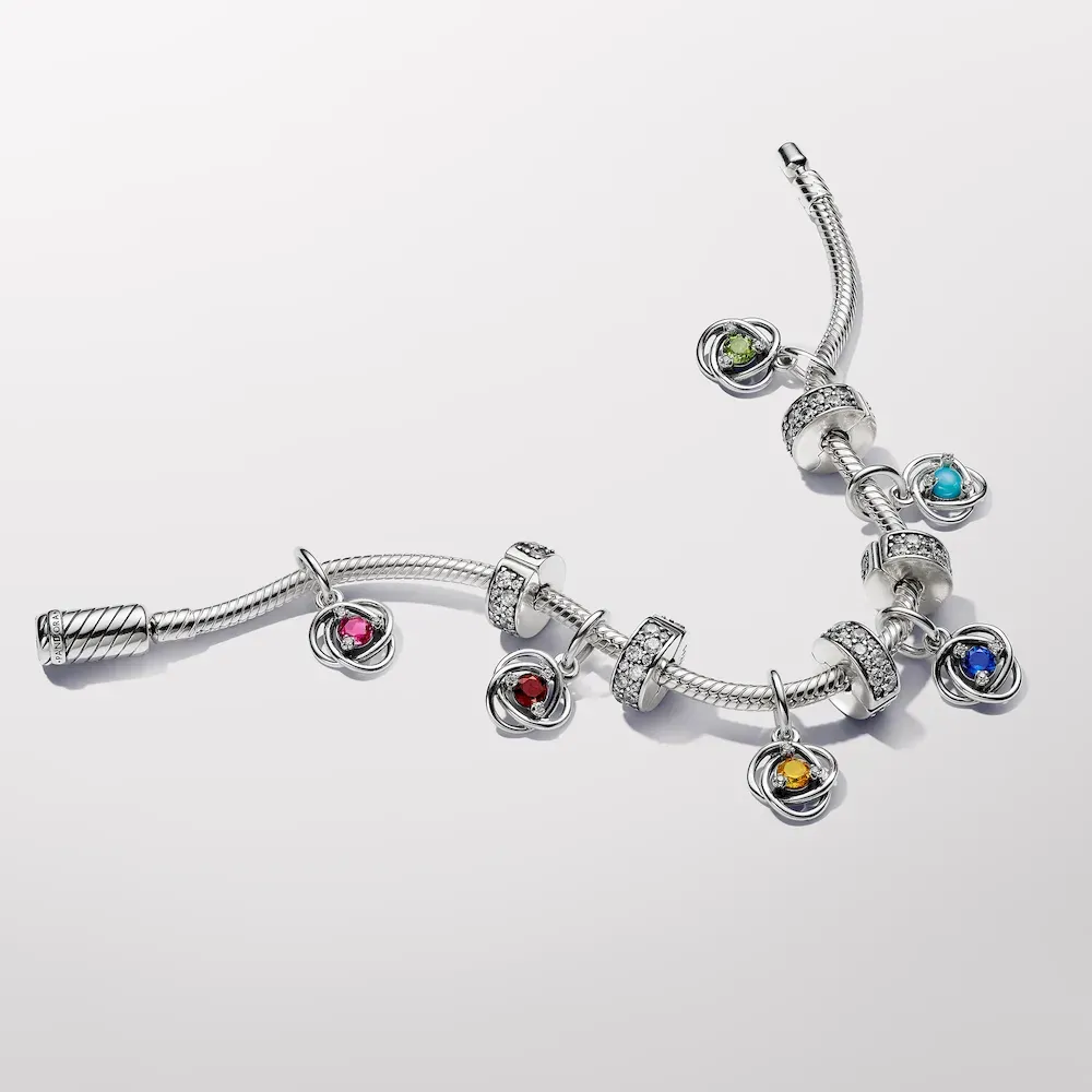 This intricate Blue Eternity Circle Dangle Charm is a must-have infinity charm for your Pandora Moments collection. Crafted in lustrous sterling silver, it features an openwork infinity braid decorated with a central blue man-made crystal, elegantly surrounded by three clear cubic zirconia. The intricate design symbolizes eternity and adds an additional layer of meaning to the piece. Elevate your bracelet with this essential piece or gift it as a representation of an everlasting bond.