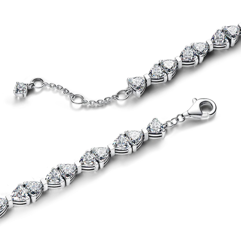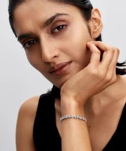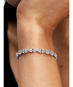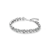 Put a bow on your look. Made of sterling silver and set with clear cubic zirconia, this bracelet represents the connection between strength and beauty with an elegant row of connected bows.