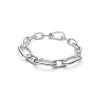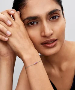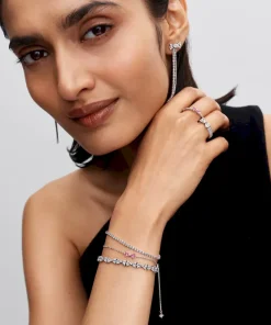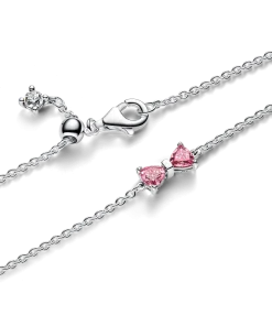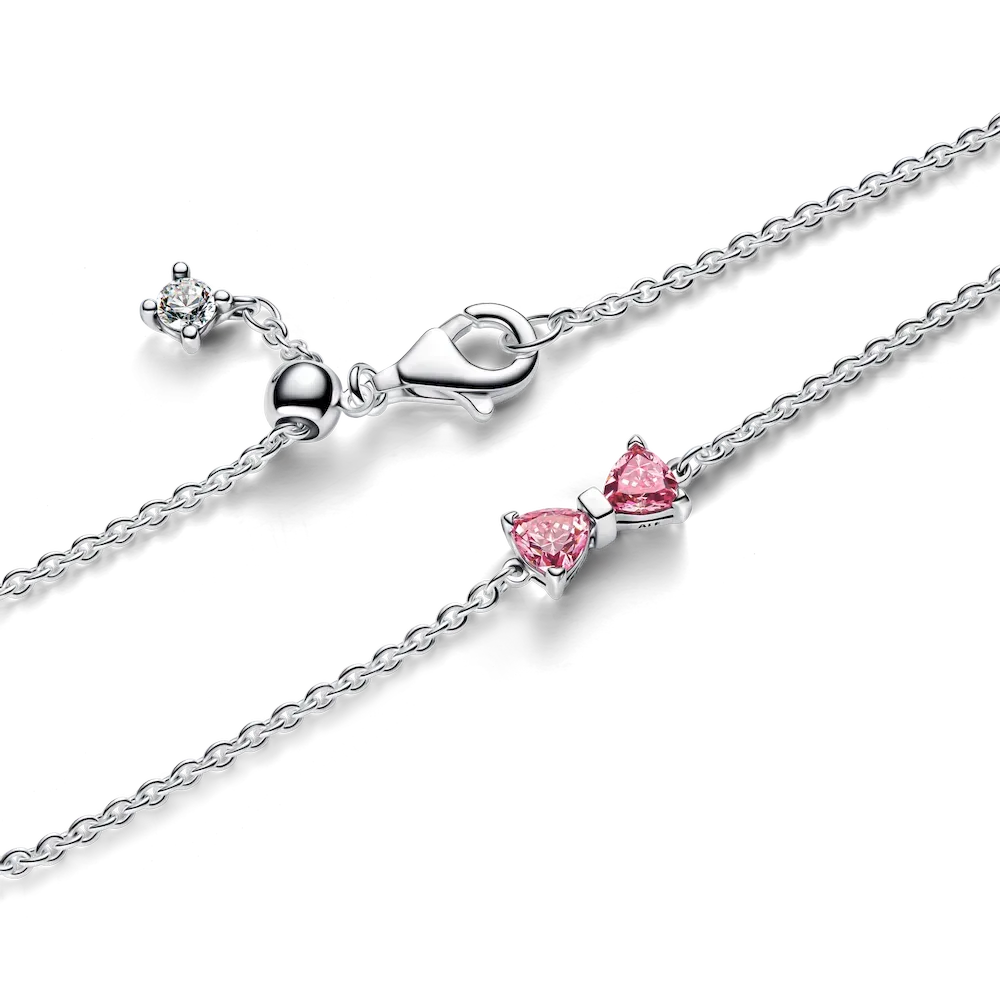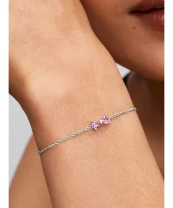 Put a bow on it. Our graceful sterling silver bracelet is set with pink and clear cubic zirconia, neatly wrapping up your look with a dangling stone at the clasp.