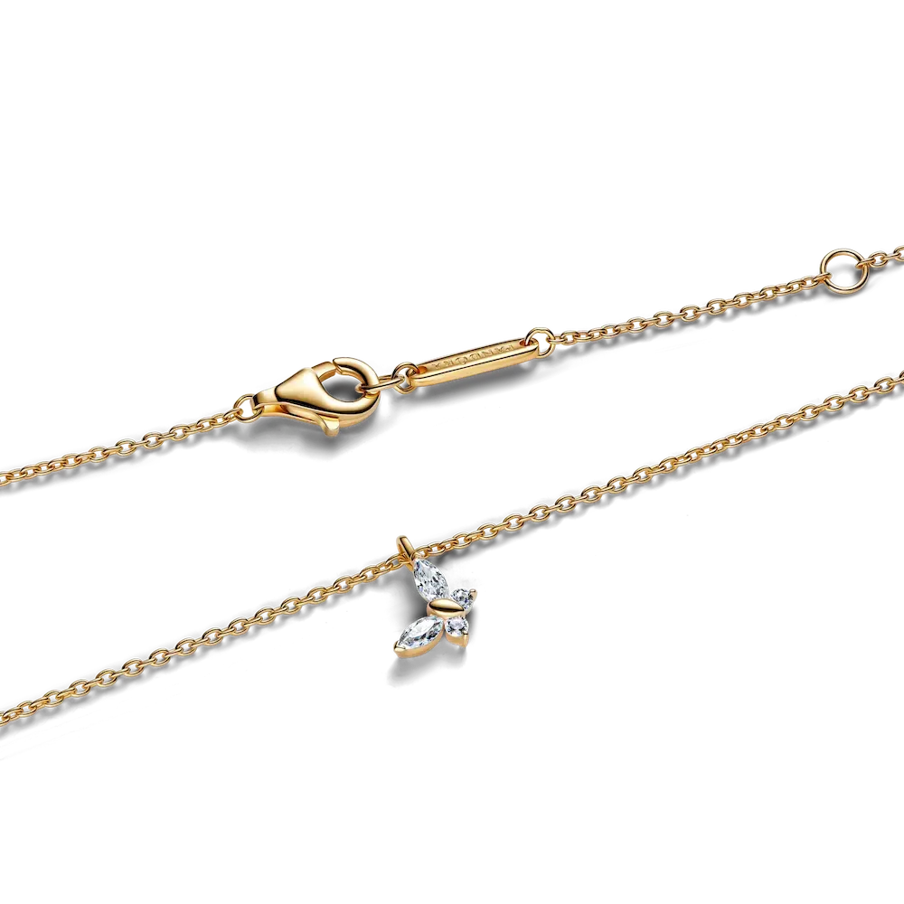 Spread your wings and transform your look with this 14k gold-plated necklace. Set with clear marquise-cut and round brilliant-cut man-made crystals, a butterfly gracefully dangles from its chain.