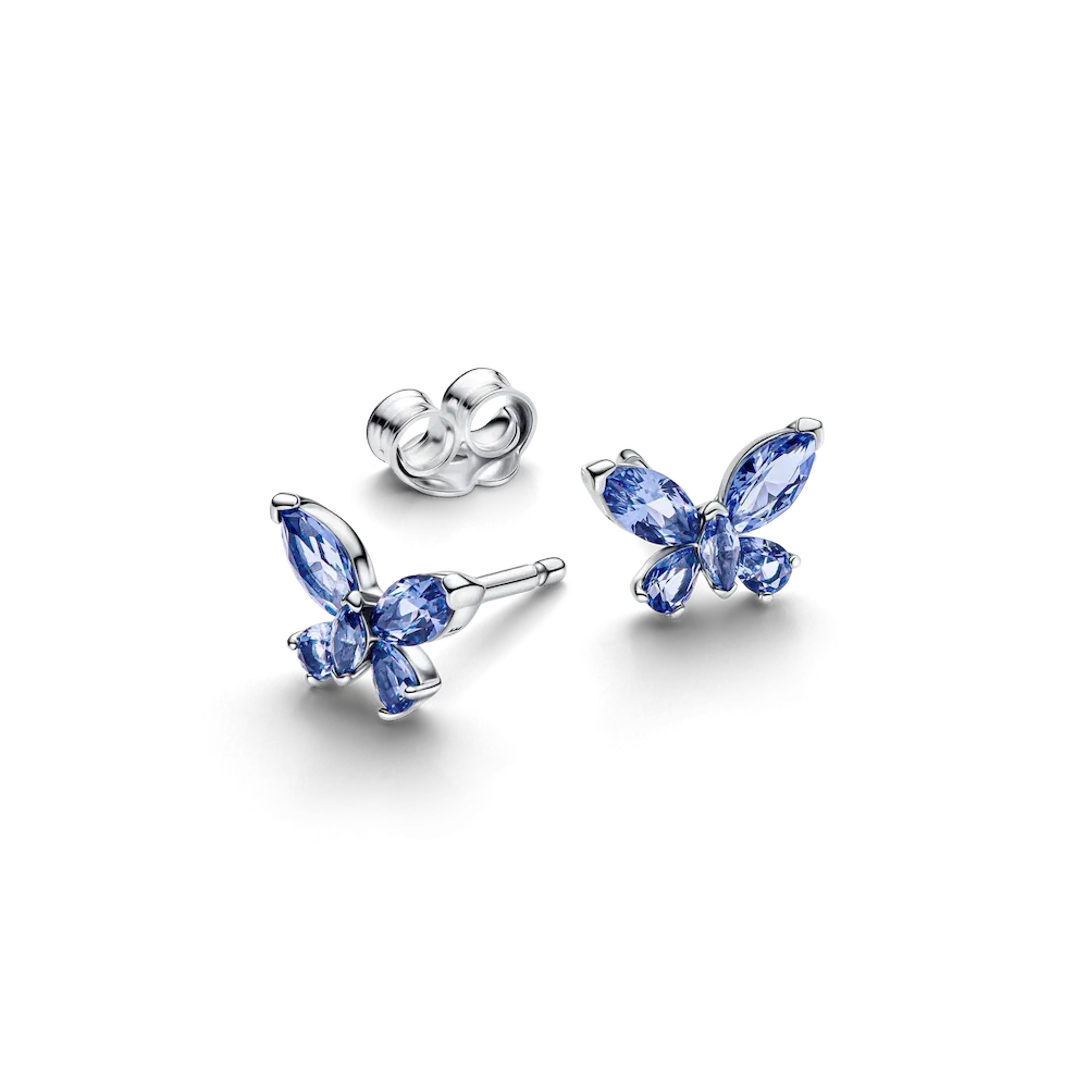 Let your imagination take flight. Our sterling silver butterfly stud earrings make a vibrant addition to your jewellery stack, with blue man-made crystals mimicking the appearance of a starry night’s sky.