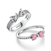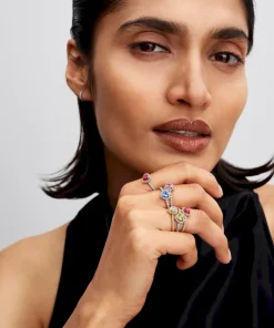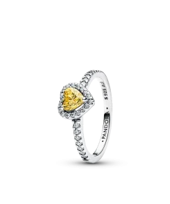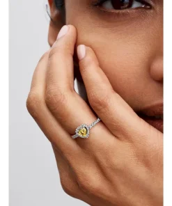 Twice is nice. Stack your love with our elegant ring duo, featuring heart-shaped blue and yellow man-made crystals and sparkling pavé.