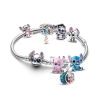 Add a celestial touch. This set includes a 14k gold-plated snake chain bracelet with an engravable heart clasp, two textured mini charms, and our Sparkling Crescent Moon Dangle Charm.