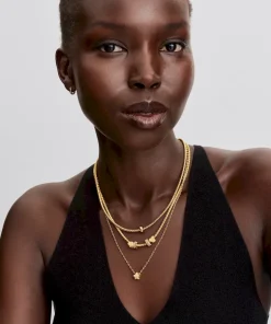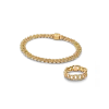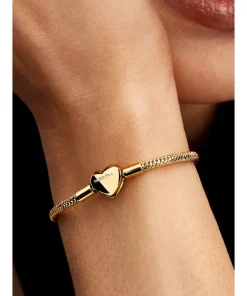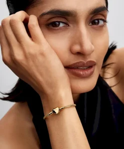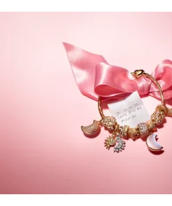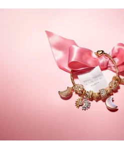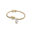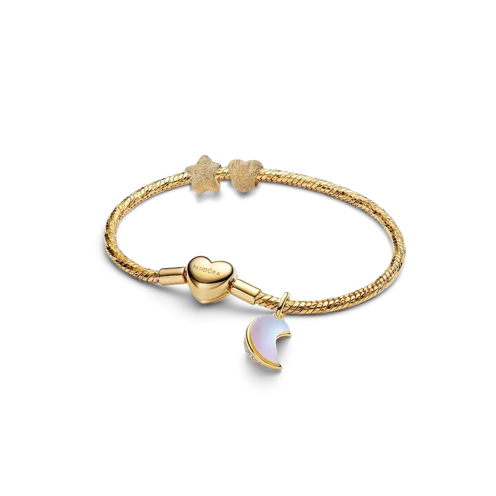 Add a celestial touch. This set includes a 14k gold-plated snake chain bracelet with an engravable heart clasp, two textured mini charms, and our Sparkling Crescent Moon Dangle Charm.