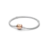 Elevate your look with this Cuban chain bracelet. Crafted in sterling silver, both sides are polished for a high-shine finish. It closes with a flat clasp, embossed with the PANDORA logo.