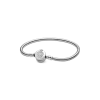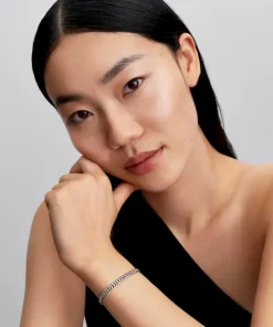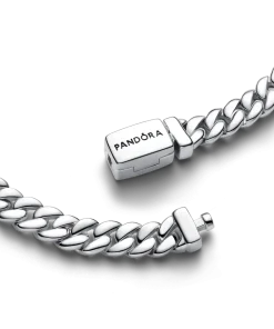 Elevate your look with this Cuban chain bracelet. Crafted in sterling silver, both sides are polished for a high-shine finish. It closes with a flat clasp, embossed with the PANDORA logo.