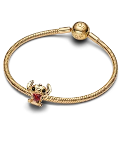 Show your wild side with this 14k gold-plated Disney’s Stitch charm. Featuring enamel details and a heart-shaped fuchsia man-made crystal, it’s a playful expression of love.