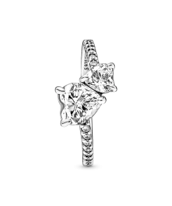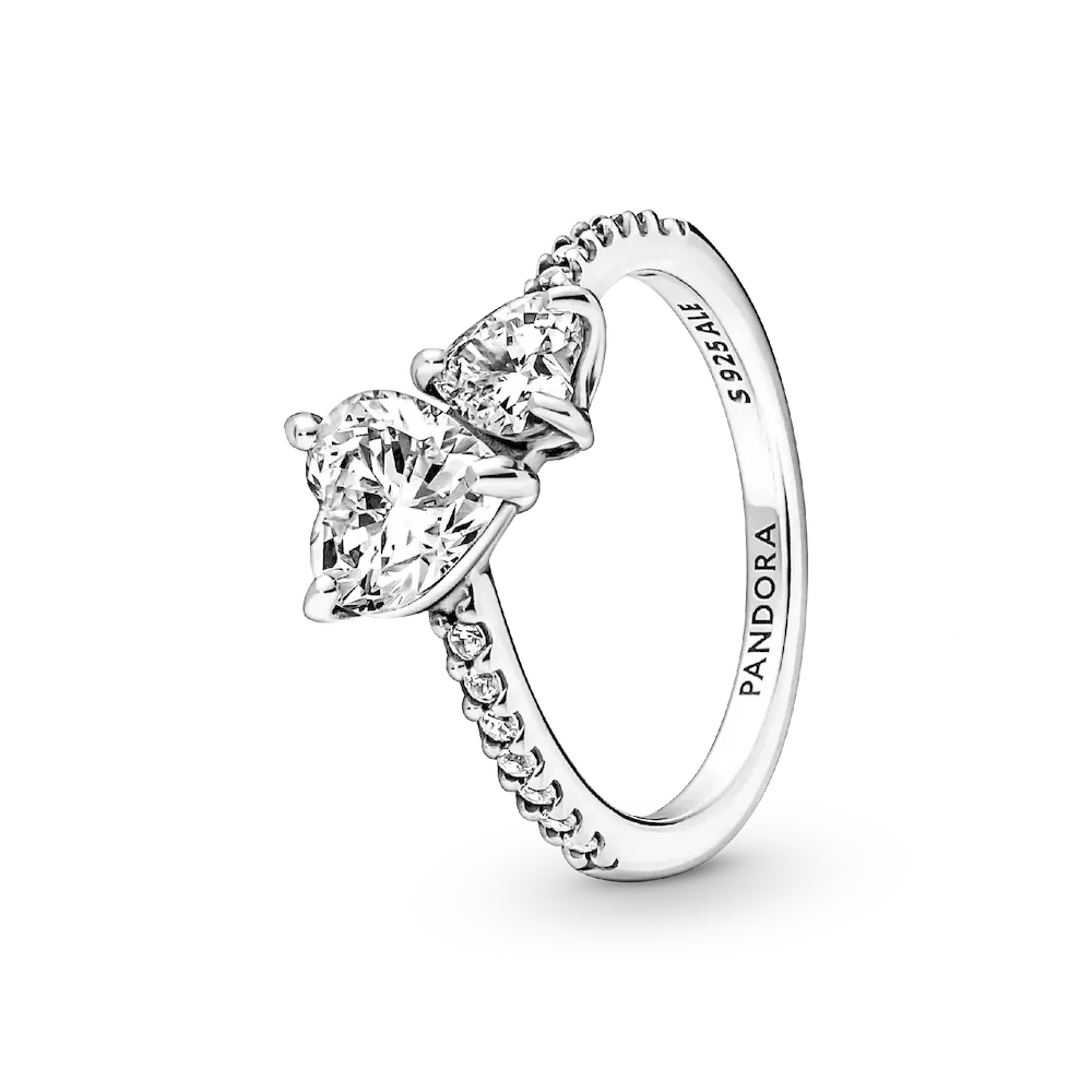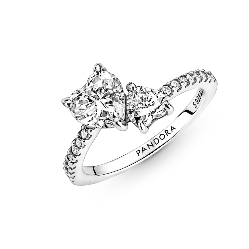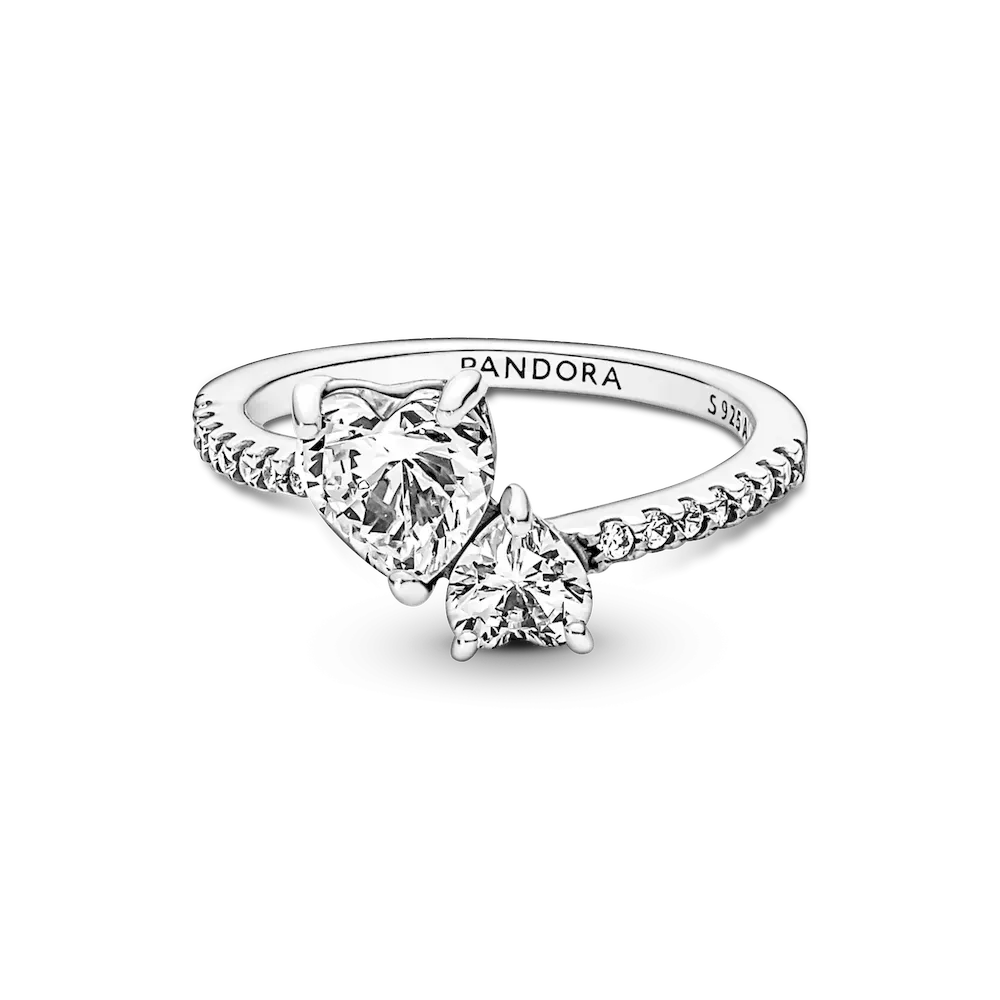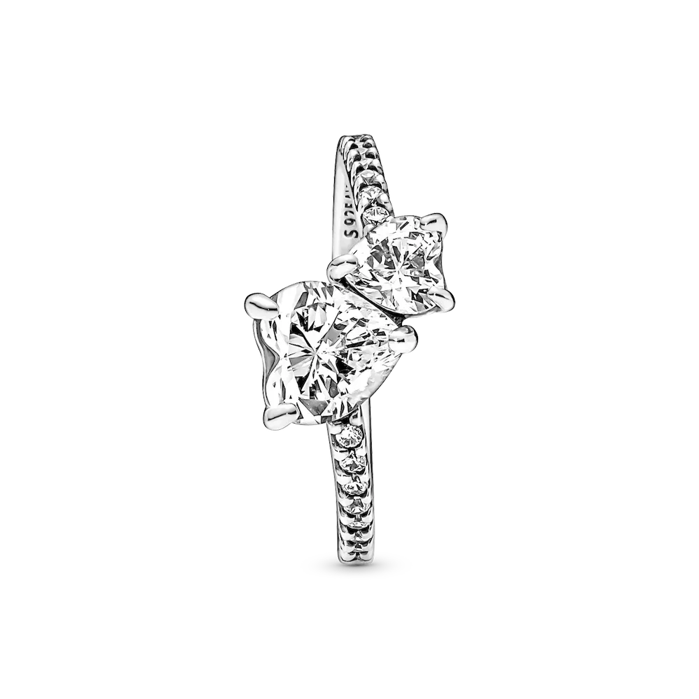 The Double Heart Sparkling Ring features two heart-shaped clear cubic zirconia nestled together at different angles to symbolize the love between a mother and child. The ring shank is accented with a half row of pavé and is asymmetrically attached to the two hearts for a more modern look. A gift that celebrates everything Mom’s done for you.