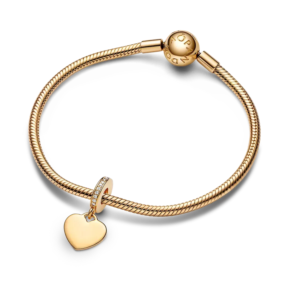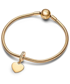 Declare your love with our Engravable Heart Tag Dangle Charm. Make a romantic statement with a personal message on the heart-shaped tag. This 14k gold-plated charm also features a row of pavé along the bail, adding an extra touch of sparkle.