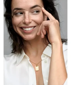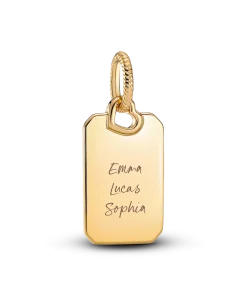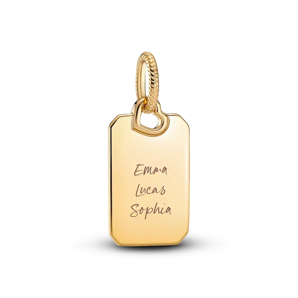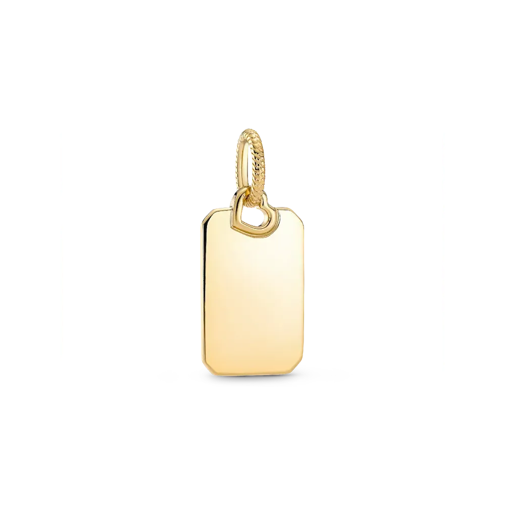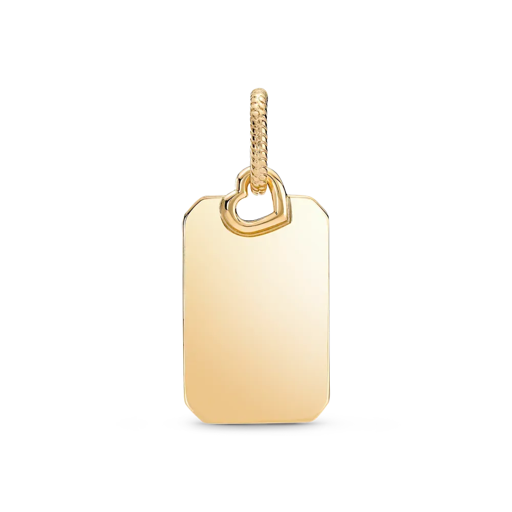 Keep personalized messages of love close to you always with this 14k gold-plated Engravable Rectangle Tag Pendant. Engravable on both sides of the pendant, add your initials or a personal message of love to a piece you can wear everyday, with this special customizable design, finished with a little openwork heart detail.