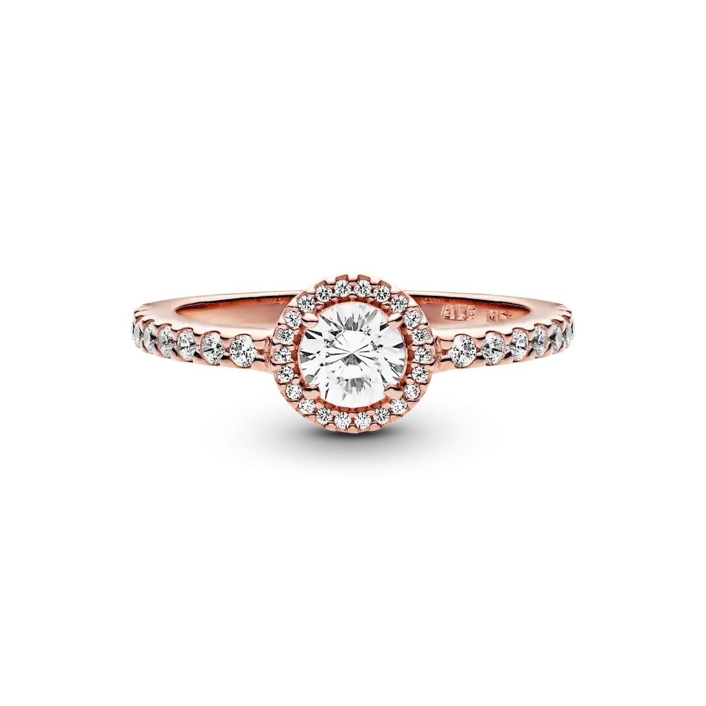 Updating the classic solitaire ring, this Classic Sparkle Halo Ring is a 14k rose gold-plated rendition. The traditionalist piece is centred with a sparkling cubic zirconia that’s surrounded by a halo of smaller stones. Wear it, share it as a promise ring or stack with favourite pieces to give the classic look a modern makeover.